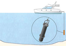 ?AT6104DM 主機所探測到的數(shù)據(jù)通過特殊電纜傳輸?shù)剿娴碾娔X上,可以即時看到水下的數(shù)據(jù)。