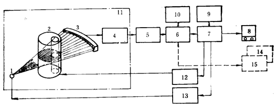 計算機(jī)斷層掃描技術(shù),簡稱CT(Computertomography)。它是根據(jù)物體橫斷面的一組投影數(shù)據(jù),經(jīng)計算機(jī)處理后,得到物體橫斷面的圖象。其裝置結(jié)構(gòu)如圖4所示。