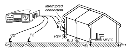 (b)   斷開待測的接地電極,使用4線2探頭的方法測量