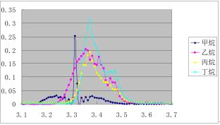 從上表可以看出,煤氣主要成分中CO、O2與背景氣N2的熱導系數相當,對H2的測量結果影響不大,但是CO2、CH4對H2測量影響明顯。通過理論分析及實驗表明,如果氣體成分中含有CO2,會使H2的測量讀數偏低;如果氣體成分中含有CH4,會使H2的測量讀數偏高。因此為了得到準確的H2含量,應對H2濃度進行CO2、CH4的濃度校正。此外由于熱導傳感器的基本原理是通過對氣體流動帶走的熱量進行換算,如果采用直接流通式的熱導檢測池,很難控制氣流,流量大小直接影響H2的讀數,為了得到*的煤氣熱值,煤氣分析儀還必須實現CH4、CnHm無干擾測試。大多數紅外分析儀僅以CH4為測試對象,折合成碳氫化合物總量計算熱值。煤氣成份中,特別是焦爐煤氣,除甲烷外,還含有其他碳氫化合物等成分。根據紅外吸收原理,如圖1,乙烷等碳氫化合物在甲烷的特征波長3.3um左右有明顯吸收干擾。當煤氣中其他碳氫化合物含量較大時,CH4的測試值會明顯偏大,導致熱值測試不準,其熱值測試值也無法保證精度。