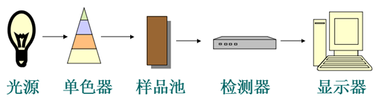 分光光度計(jì)主要由光源、單色器(分光鏡)、吸收池、檢測(cè)器和顯示器五大部分組成。