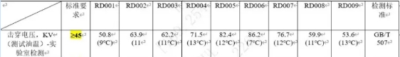 本次測試嚴格按照該標準進行,油介電強度測試數據如下: